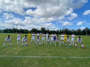後半は、自分たちが目指すサッカーやゴールへの形をチャレンジし続け、声を出し合い、勝利のホイッスルを聞きました。